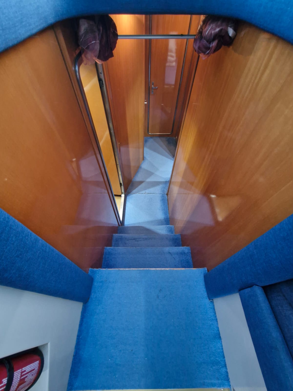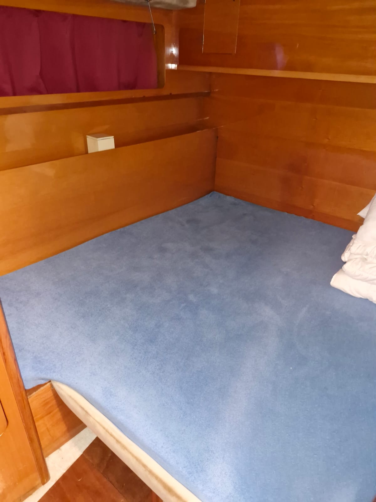 Postele – hlavní kajuta 190×140 cm, patrovka dvě lůžka 184x58cm,a kajuta hostovská 180×165 cm. Loď je velice dobře prostorově řešená. Má 3 ložnice, celkem pro 6 osob, 2x manželská postel a v menší ložnici jsou 2 patrové postele dále 2 kompletně vybavené toalety v jedné je i bidet.
