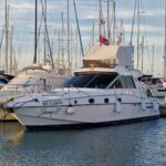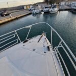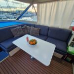 V lodi jsou 3 ložnice, 2 koupelny, salon, kompletně vybavená kuchyň a venkovní paluba a Flybridge.