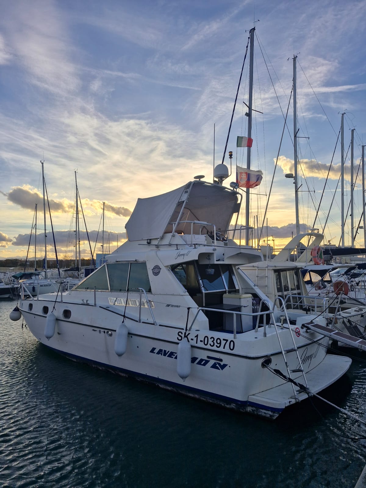 Možnost převzetí vč. kotevního místa za velice výhodných cenových podmínek v krásné marině ve městě Pescara cca 10 min. autem z letiště. Létá sem pravidelná sezonní linka Praha-Pescara ceny letenek běžně okolo 20 Eur a pak celoroční linka Krakow nebo Wroclaw- Pescara ceny okolo 20 Eur.